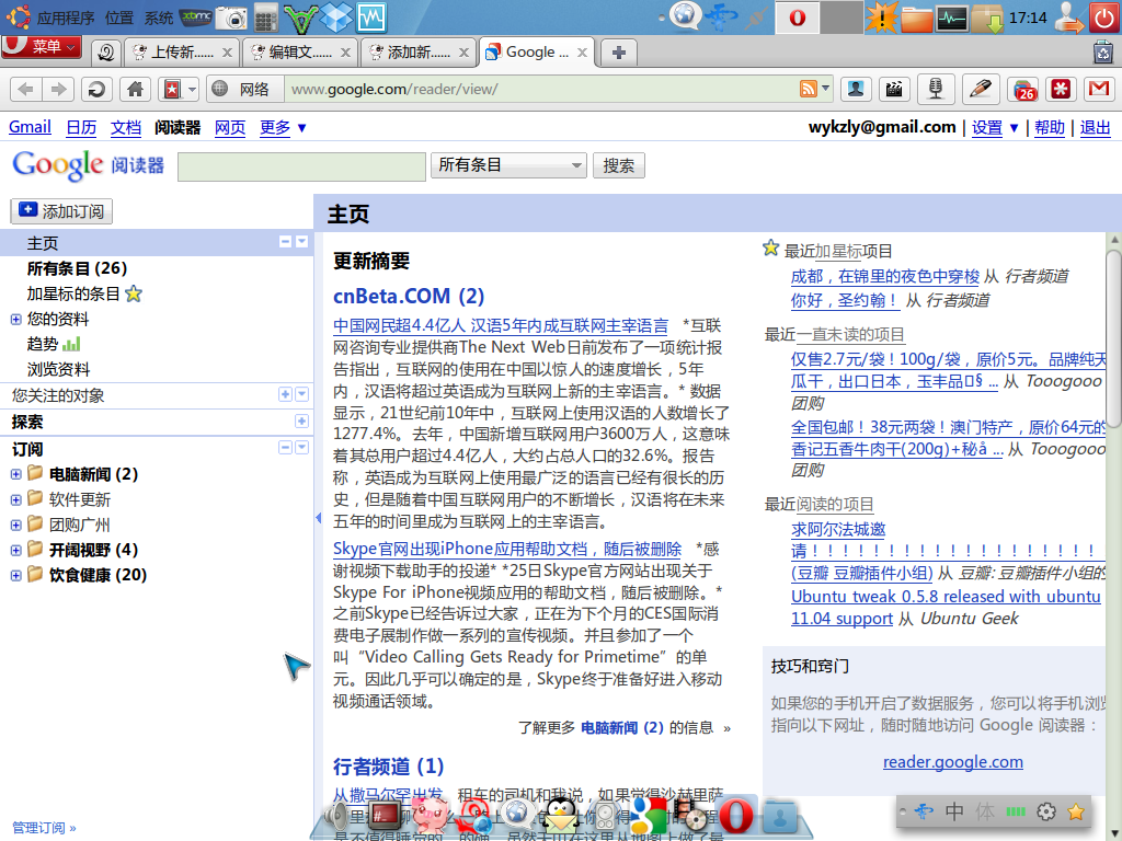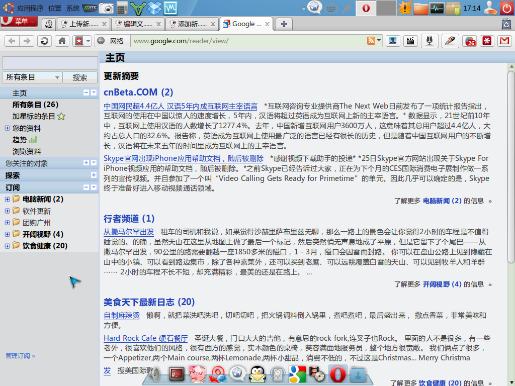 打开opera,进入googlereader页面然后右键点击页面空白处,