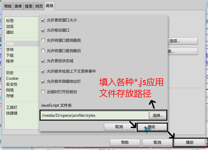 最后一步就是把各个js脚本放入该路径重启opera就可以起作用了。