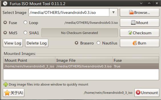 今天奶牛为大家推荐一款ubuntu系统下的光盘镜像挂载程序,推荐这个小程序是因为比较喜欢它的图形化界面,这样子可以减少很多新手挂载的问题,软件的支持功能也蛮好的,支持ISO, IMG, BIN, MDF 和 NRG 镜像的挂载。程序还有验证Md5跟Sha1哦。 程序的界面如下,非常的简洁